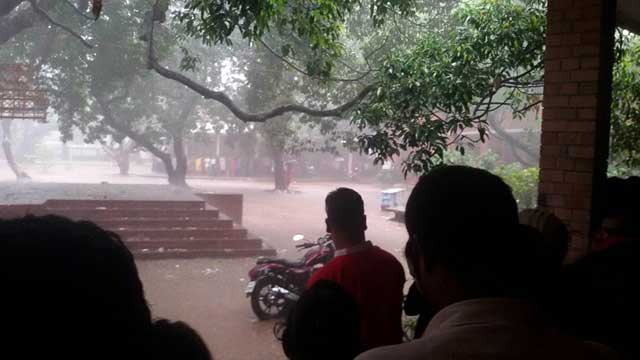 শনিবার সকাল থেকে রোদেলা আবহাওয়া থাকলেও বিকাল ৪টার পর আকাশ ঢেকে যায় কালো মেঘে। এক সময় শুরু হয় ভারী বৃষ্টি, সঙ্গে ঝড়োহাওয়া। কোথাও কোথাও হয়েছে শিলাবৃষ্টিও।